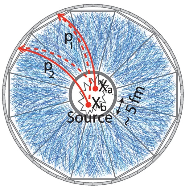 图1:STAR探测器内探测到的两个反质子-反质子关联示意图