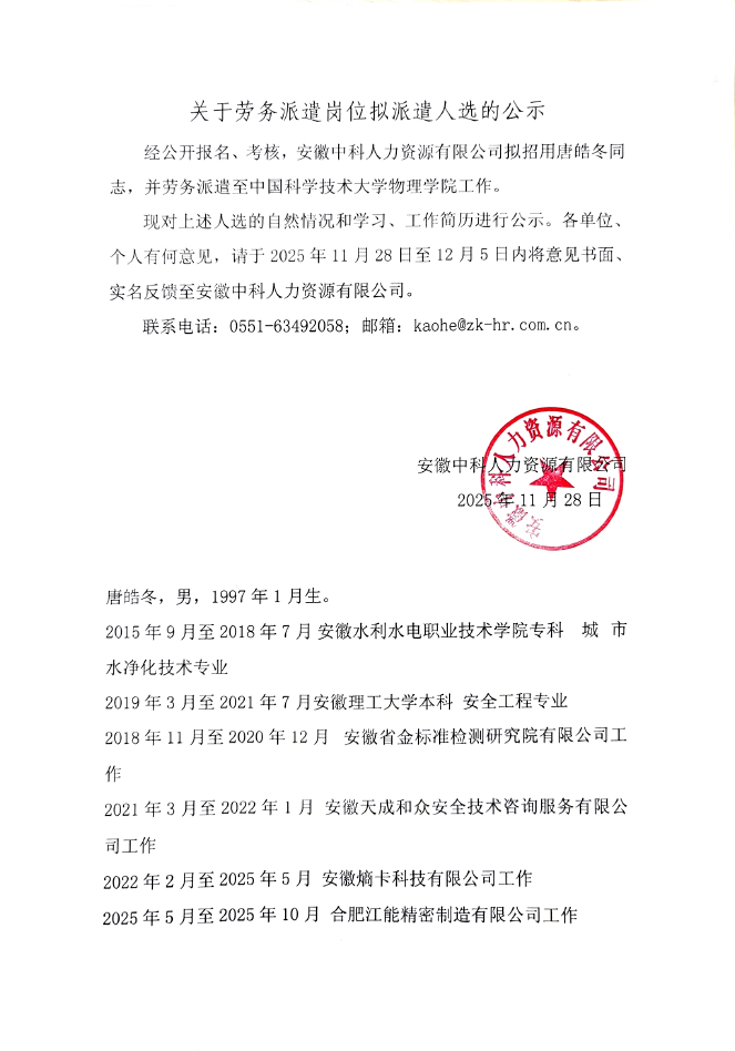 关于劳务派遣岗位(机械工程师)拟派遣人选的公示