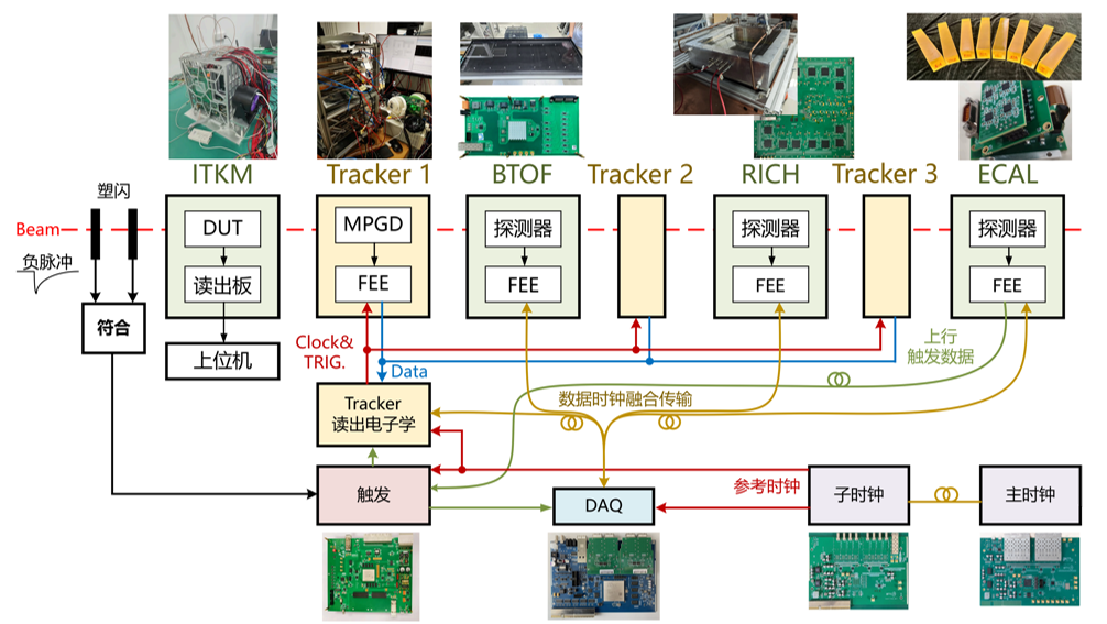 经过前期技术攻关,STCF探测谱仪的部分探测系统完成了样机的研制。本次测试围绕硅内径迹探测器(ITKM)、桶部粒子鉴别探测器(PIDB)、端盖粒子鉴别探测器(PIDE)、电磁量能器(ECAL)、数据获取(DACQ)、触发(TRIG)以及时钟与数据传输(CLDT)共7大系统的性能,开展了联合测试。束流测试利用0.5—5 GeV的缪子、电子和强子,针对样机的粒子鉴别能力、能量、位置和时间响应等关键性能指标进行了系统性测试,为后续详细开展样机性能研究提供了重要的实验数据。