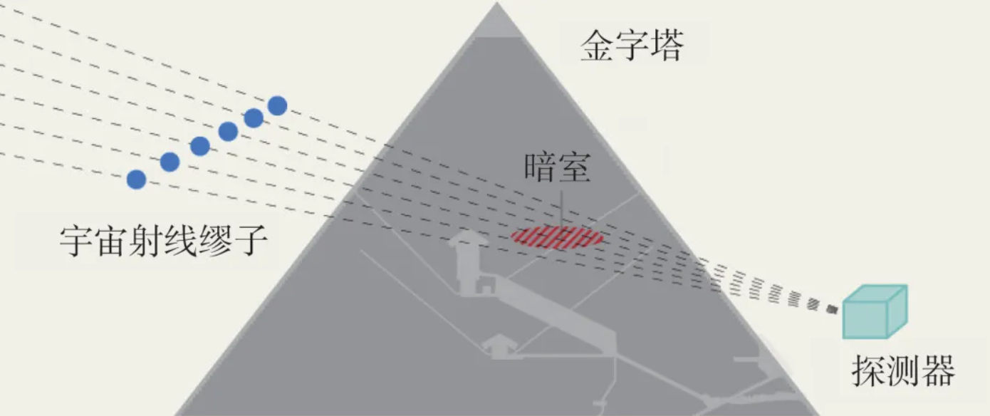 宇宙射线缪子成像在历史遗迹考古中也得到了成熟的应用。20世纪60年代Luis Alvarez使用气体探测器对卡夫拉金字塔内部的隐藏空间进行了成像观测,描制出世界首张金字塔“缪子透射图”[39]。从2015年开始,由多国科研机构组成的Scan Pyramids计划开始对一些古老金字塔内部结构进行成像观测。如图10所示,该计划的日本成员在2017年首次发现了世界最大金字塔——胡夫金字塔内部存在巨大的内室空洞结构[40]。
