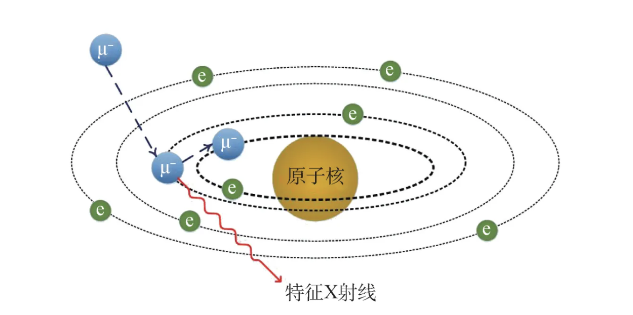 图12 负缪俘获和跃迁并放出X射线过程示意图