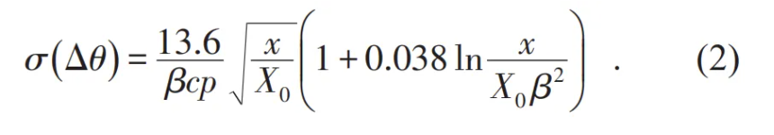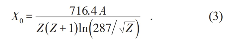 式中c为光速,p为缪子动量,x为缪子在物体中的路径长度,X0为辐射长度。X0与物体原子种类直接相关,其半经验公式为