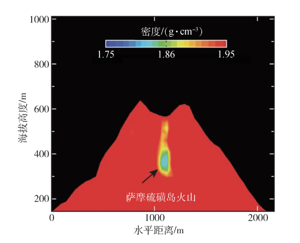图9 日本萨摩硫磺岛火山宇宙射线缪子成像图[35]