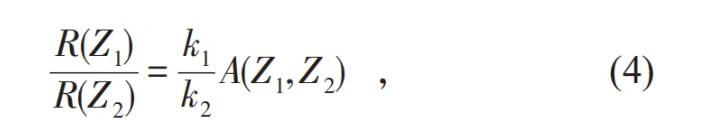 两种元素总莱曼系X射线之比R(Z1)/R(Z2),可将两原子的缪子俘获之比A(Z1,Z2)与原子数量比k1/k2关联起来: