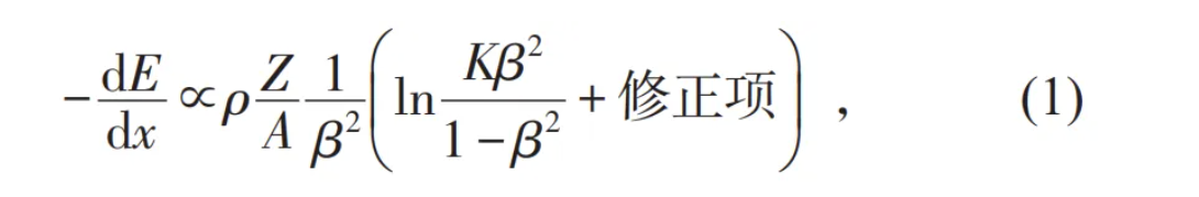 透射成像是通过测量缪子穿过物体后的通量变化来对其成像。缪子穿过物体时会通过电磁相互作用损失能量,其能量损失dE/dx由Bethe—Bloch公式描述: